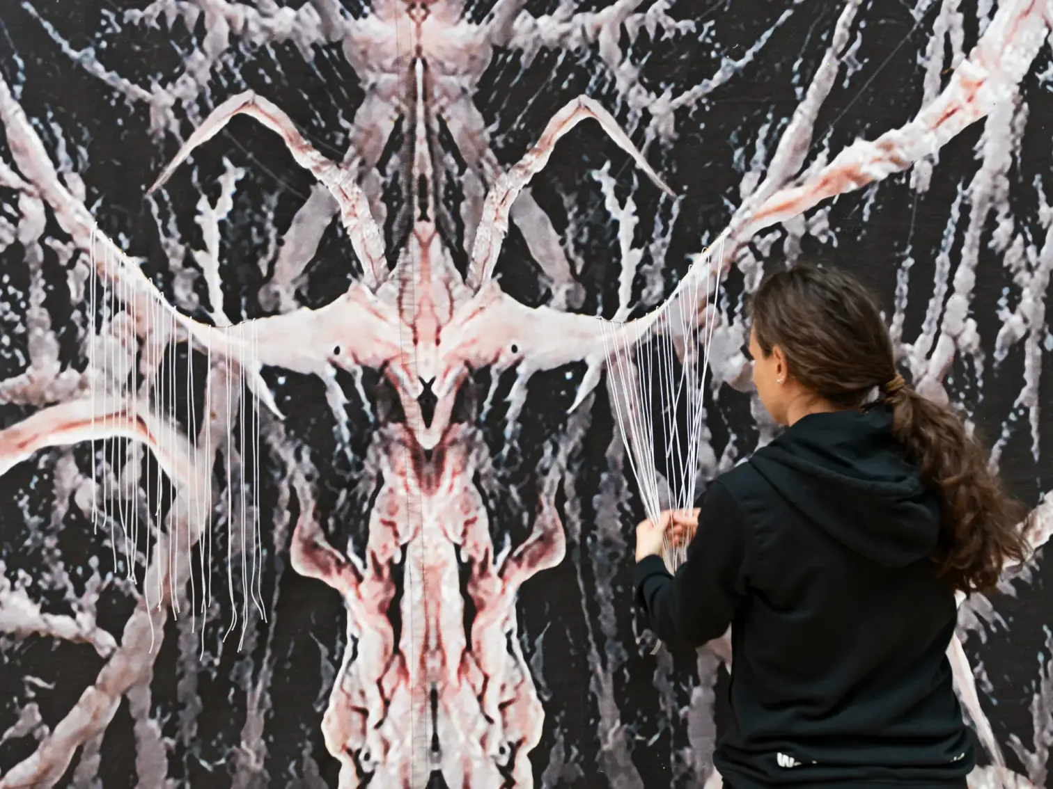 During an on-site visit, the artist felt something was missing. To add more depth to the design, she incorporated fringes into the artwork, which she then sewed by hand—an homage to the duodji tradition, the Sámi word for artistic craftsmanship.