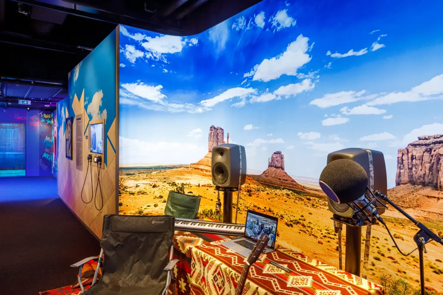A big view of the L.A skyline plays an important part of the exhibition, a view that Tim Bergling spent many years of his life gazing over. The original plan was to use a big LED screen with a film that shows how the view changes over time, from dusk till dawn. But it felt misplaced and Ingmarie was afraid that the heat from the screen would harm the many original instruments in front of the screen. Instead, they decided to use a big lightbox with sound absorbers.