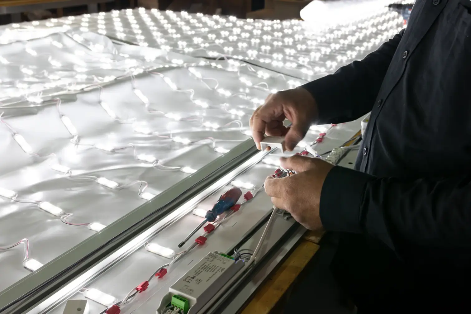 From classic lightboxes to dynamic, programmable systems, we design custom lighting in any shape, temperature, and size — controlled via Casambi, Plejd, or your preferred system.