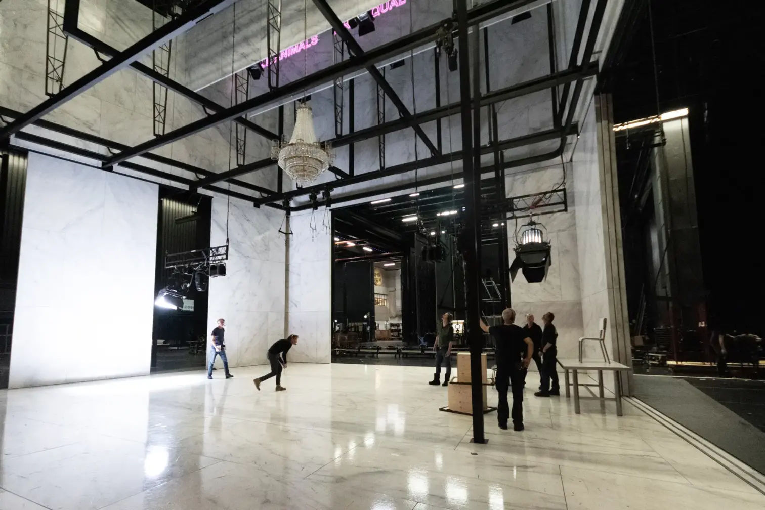 Det konstnärliga teamet ville bjuda in publiken i George Orwells ”Animal Farm”, med en vision som andades historia, makt och konst. I vanliga fall samarbetar the Dutch National Opera & Ballet tillsammans med scenografen för att diskutera scenografin. För denna uppsättning såg det dock annorlunda ut på grund av att scenografen Paolo Fantin visste redan från början att han ville ha marmorn printad för att uppnå ett autentiskt utseende, vilket var en god idé eftersom produktionen uppgick till 500 kvadratmeter. Dutch National Opera & Ballet har samarbetat med Big Image flera gånger tidigare och eftersom de är måna om kvalitet och hantverk valde de att anförtro även denna uppgift åt Big Image.